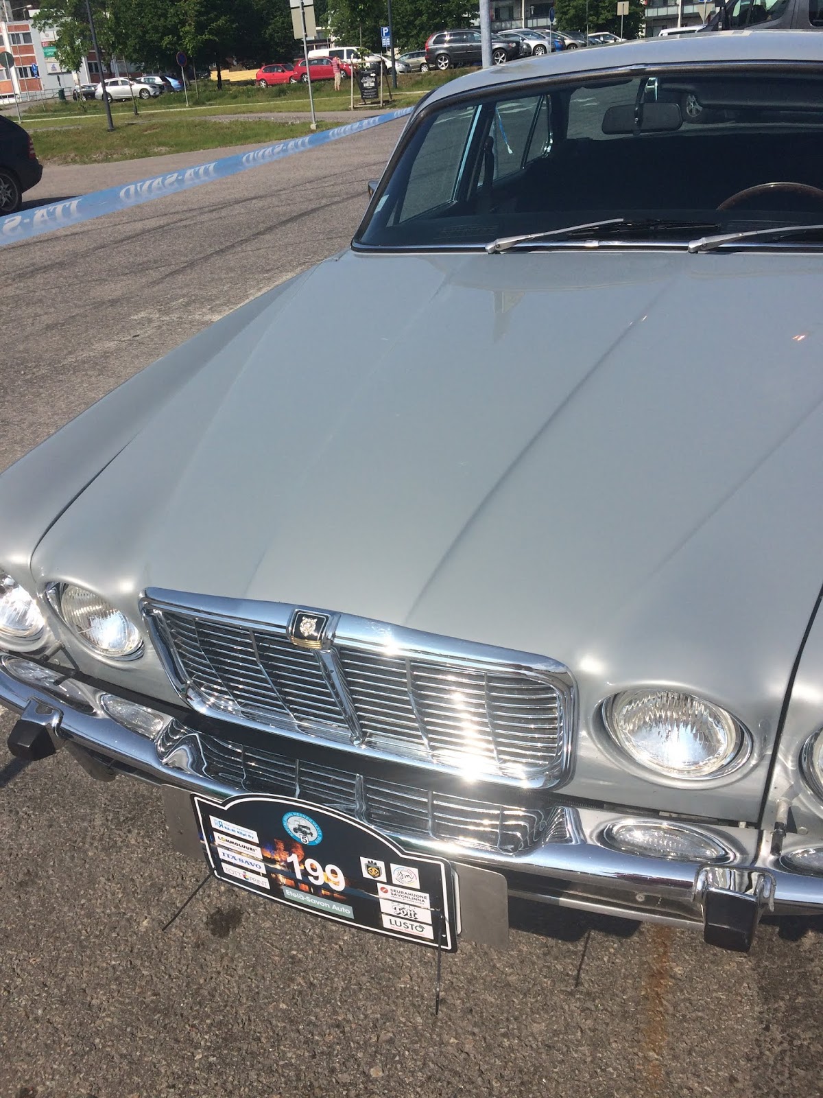 Sitten vielä pientä reissuntynkää: Käytiin ajelemassa miehen kanssa Savonlinnan retkeilyajoissa. Minä kyllä tykkään tuosta Jaguarista. Se on siis vuosimallia 1978.
